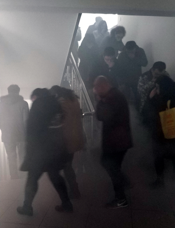 消防通道煙霧逃離演習(xí)