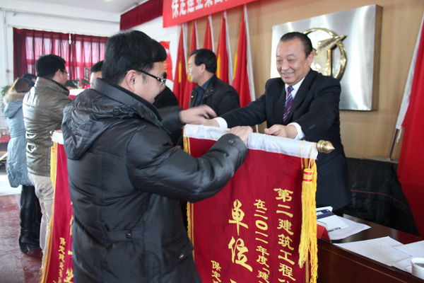 在隨后舉行的二零一一年度集團(tuán)表彰大會(huì)上,由黨委副書(shū)記閆雙彥宣讀了“二零一一年度建功立業(yè)表彰決定”,并由集團(tuán)公司領(lǐng)導(dǎo)對(duì)獲獎(jiǎng)單位頒發(fā)了錦旗和獎(jiǎng)狀。